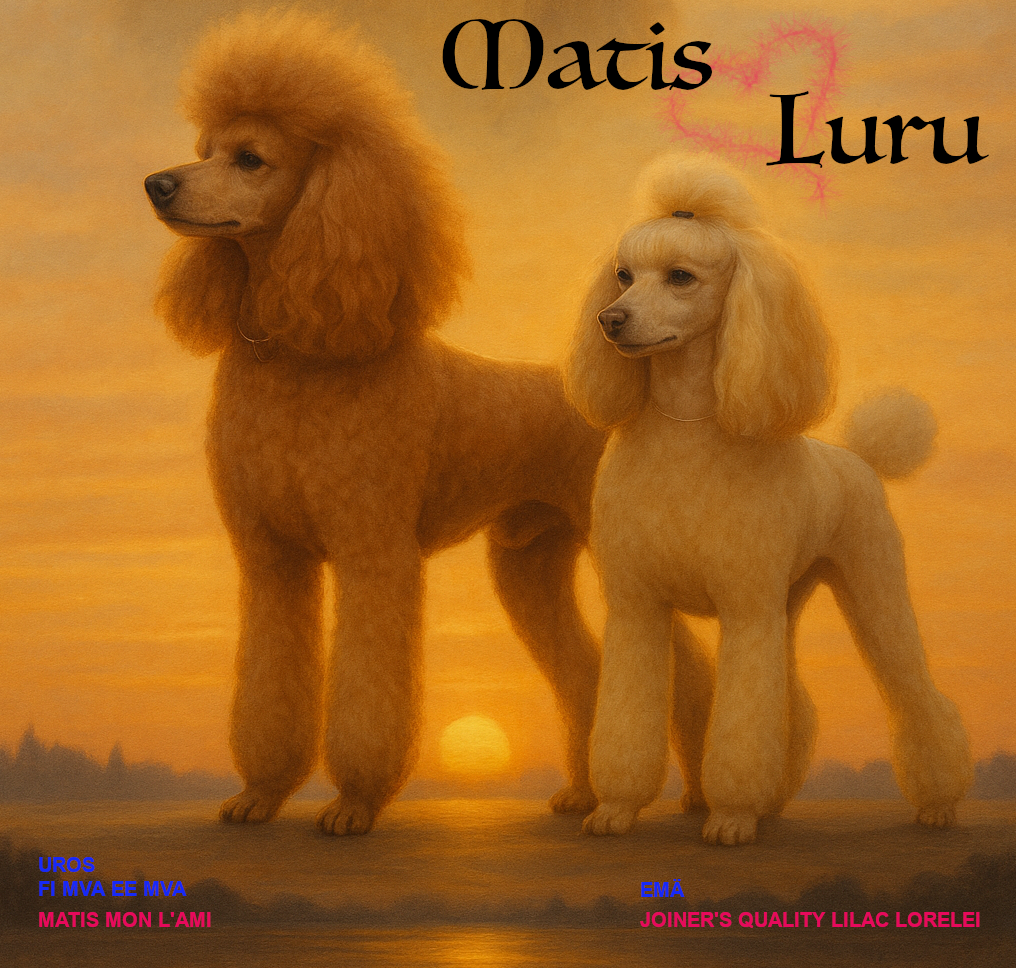 Kennel Villatallin ensimmäinen aprikoosin värinen toyvillakoirapentue on nyt syntynyt. Pentueen isä on rekisteröity kääpiöksi, mutta hän polveutuu toyvillakoirista. Matis on siis vain ylittänyt toyvillakoiralle määritellyn säkämitan. Matis omaa silti hyvin toymaisia piirteitä, kuten Lurukin. Odotamme innolla pentujen kasvamista, jotta näemme, mitä tämä pari sai aikaan.